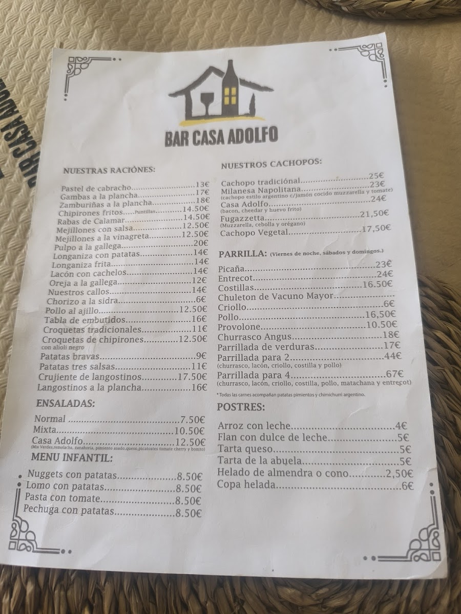 One of the standout features at Bar Casa Adolfo is its impressive selection of traditional Asturian dishes, each meticulously prepared to highlight the rich flavors of the region. Guests rave about the renowned Cachopo Casa Adolfo, a must-try dish that embodies the essence of Asturian cuisine. Diners attentively recommend indulging in the parrillada, served on a small grill with live coals, allowing you to cook the meats to your liking while relishing an authentic chimichurri sauce that whisks your taste buds away to Argentina and Brazil.
