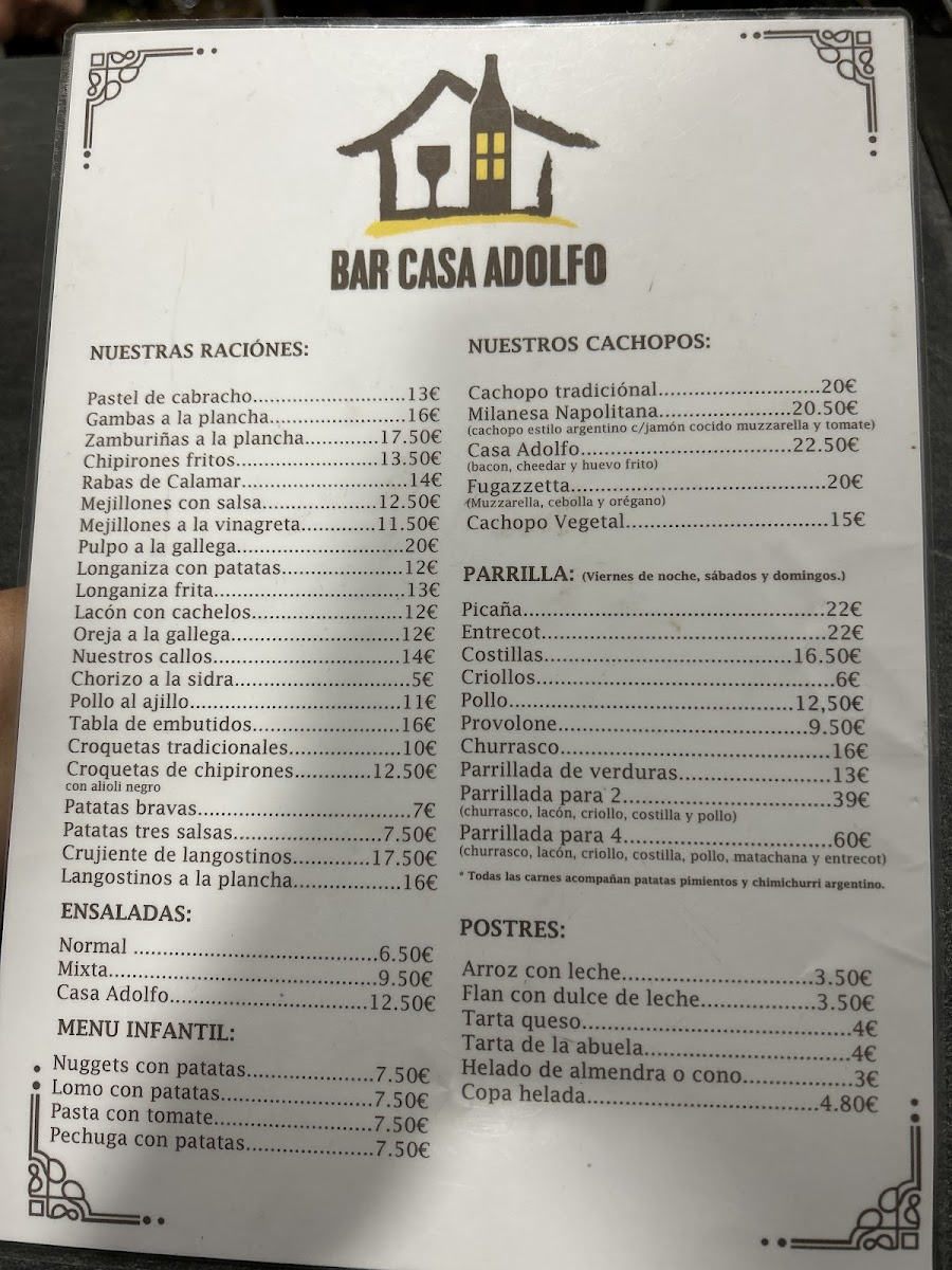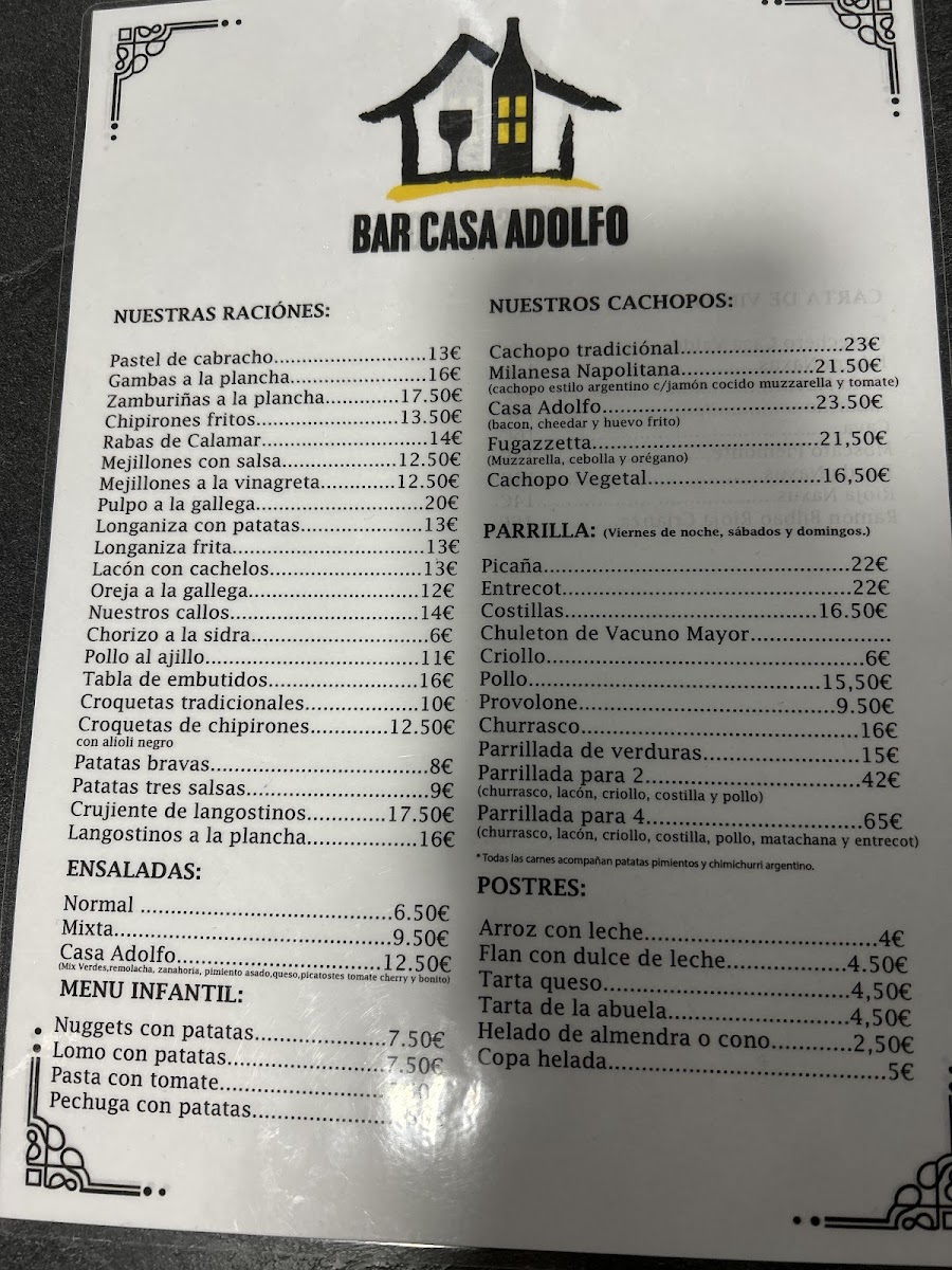 “ Everything we ordered was delicious (especially "El Cachopo Casa Adolfo"). Would recommend 100% ”